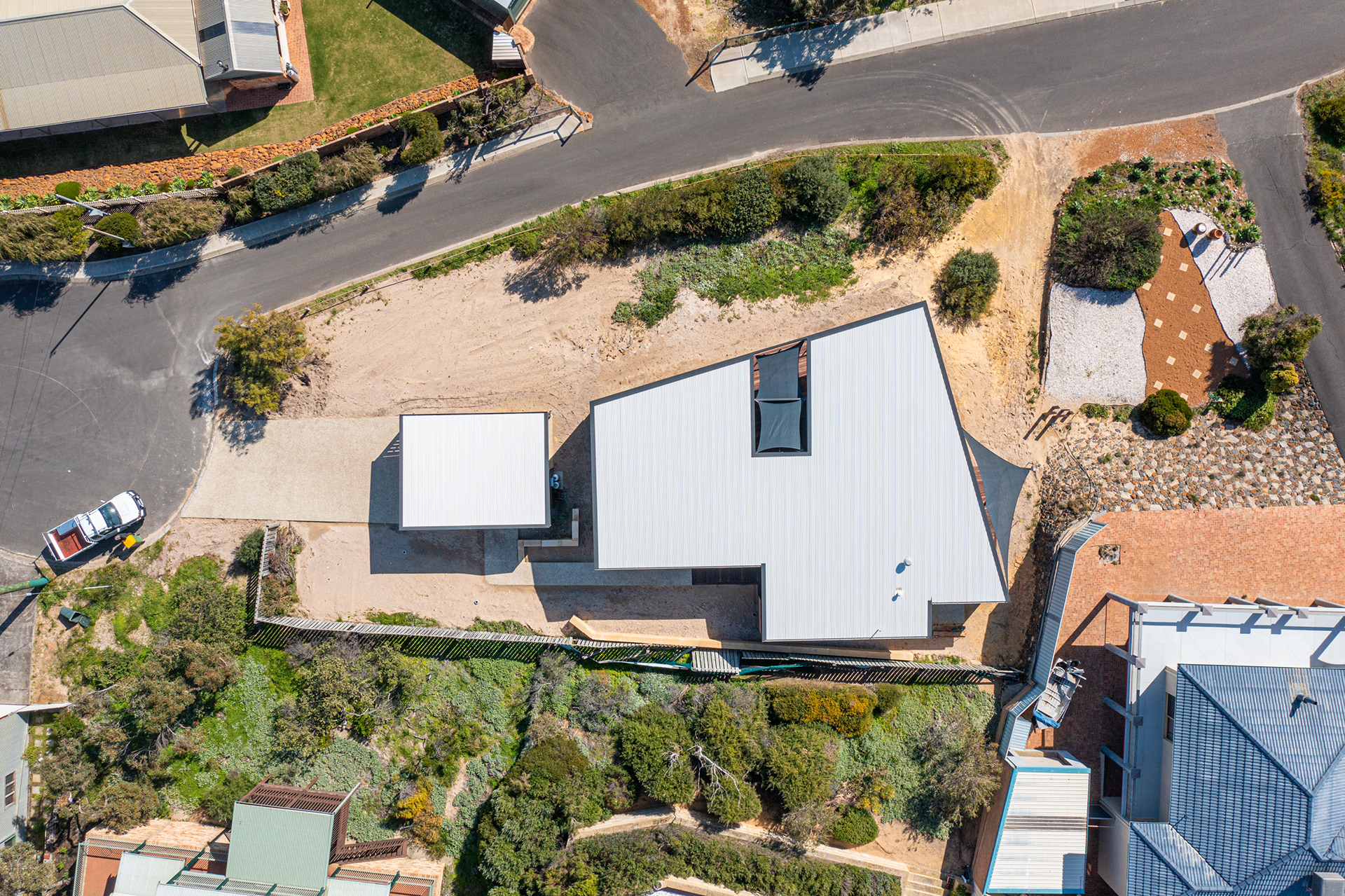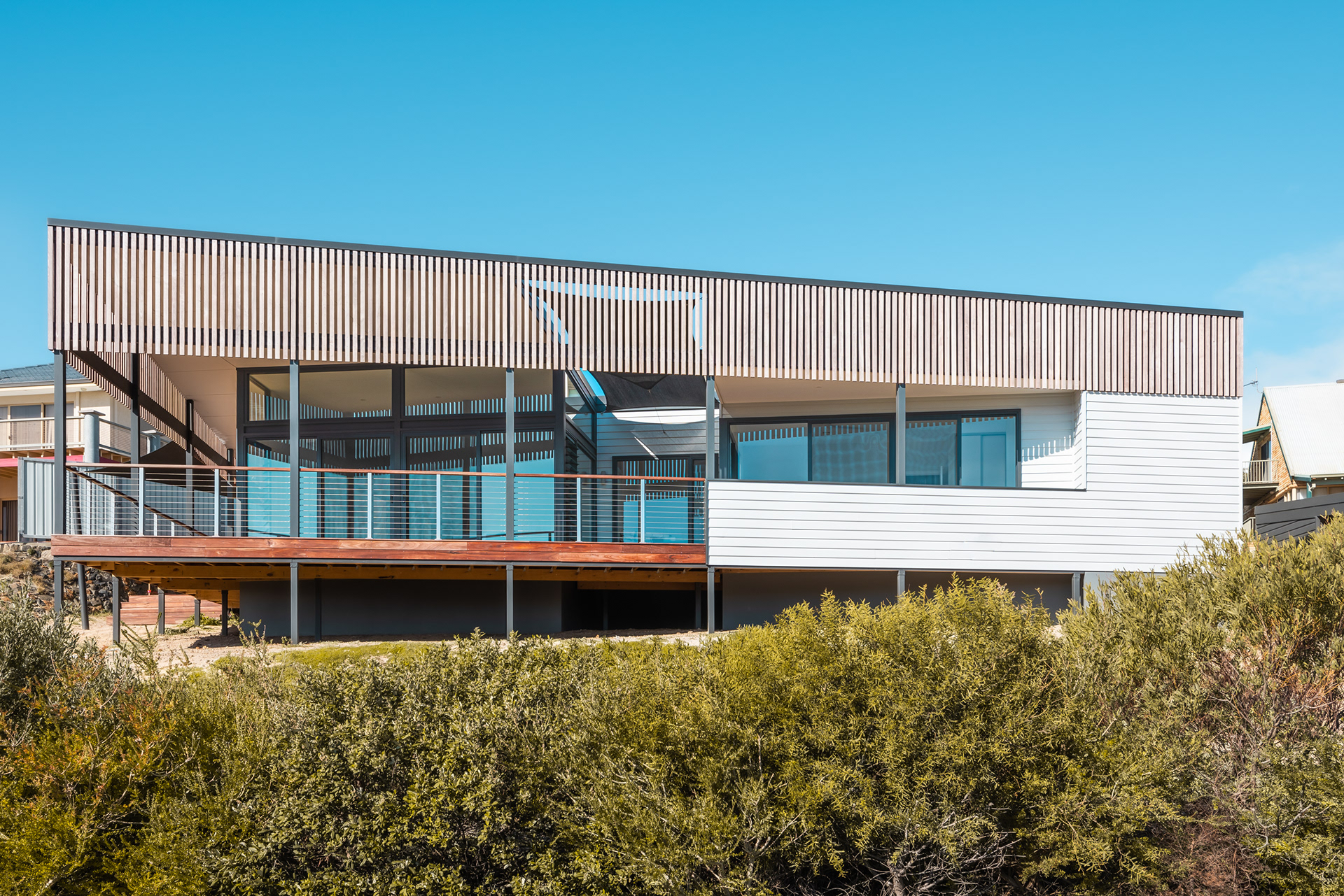 The surrounding dunes are now being rehabilitated with native planting, further embedding the home into its coastal setting.